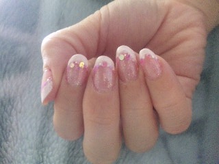 ひとまず、フレンチをぼかす為にちょっとラメ入りの薄い白を塗って